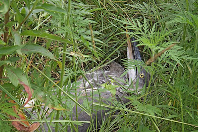 Herons are a shy and solitary bird, they will squawk and take to the air before you realize they are there. To be sure, I was surprised to able to get so close to a live heron and puzzled because I've never seen a dead one. Had to take at least one pic.