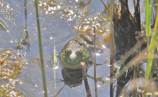 Common to the river and marsh are Wood Ducks(Aix sponsa) A perching duck that nests in tree hollows. A day after hatching the baby ducks climb to the opening and jump to the ground, sometimes from a height of more than 100 feet. Once the ducklings are on the ground, mama duck leads them to water.