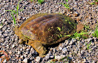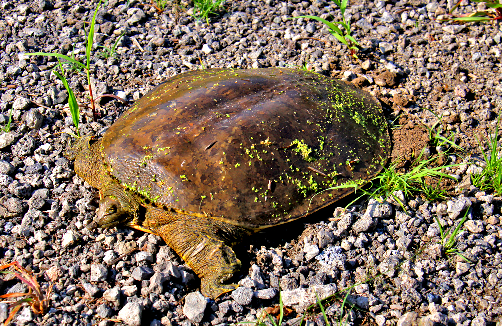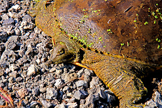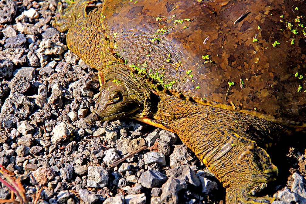 I met this turtle on the trail. A big turtle, her shell was 2 feet long. They have a soft leather like shell.