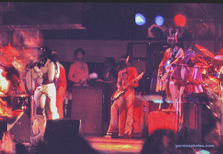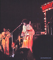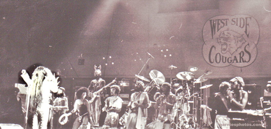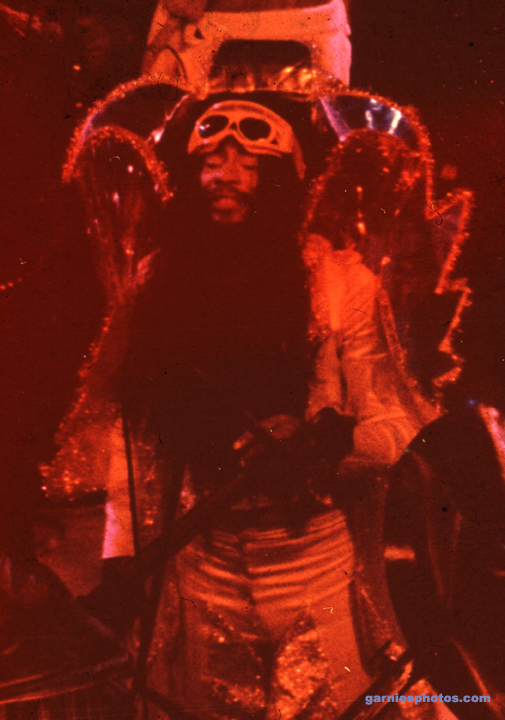 Photos of Bootsy Collins Stretchin' Out in a Rubber Band, funkin' around for fun with the original "Space Bass". The Rubber band opened for P-Funk. This show took place at West Side High School in Gary, Indiana.